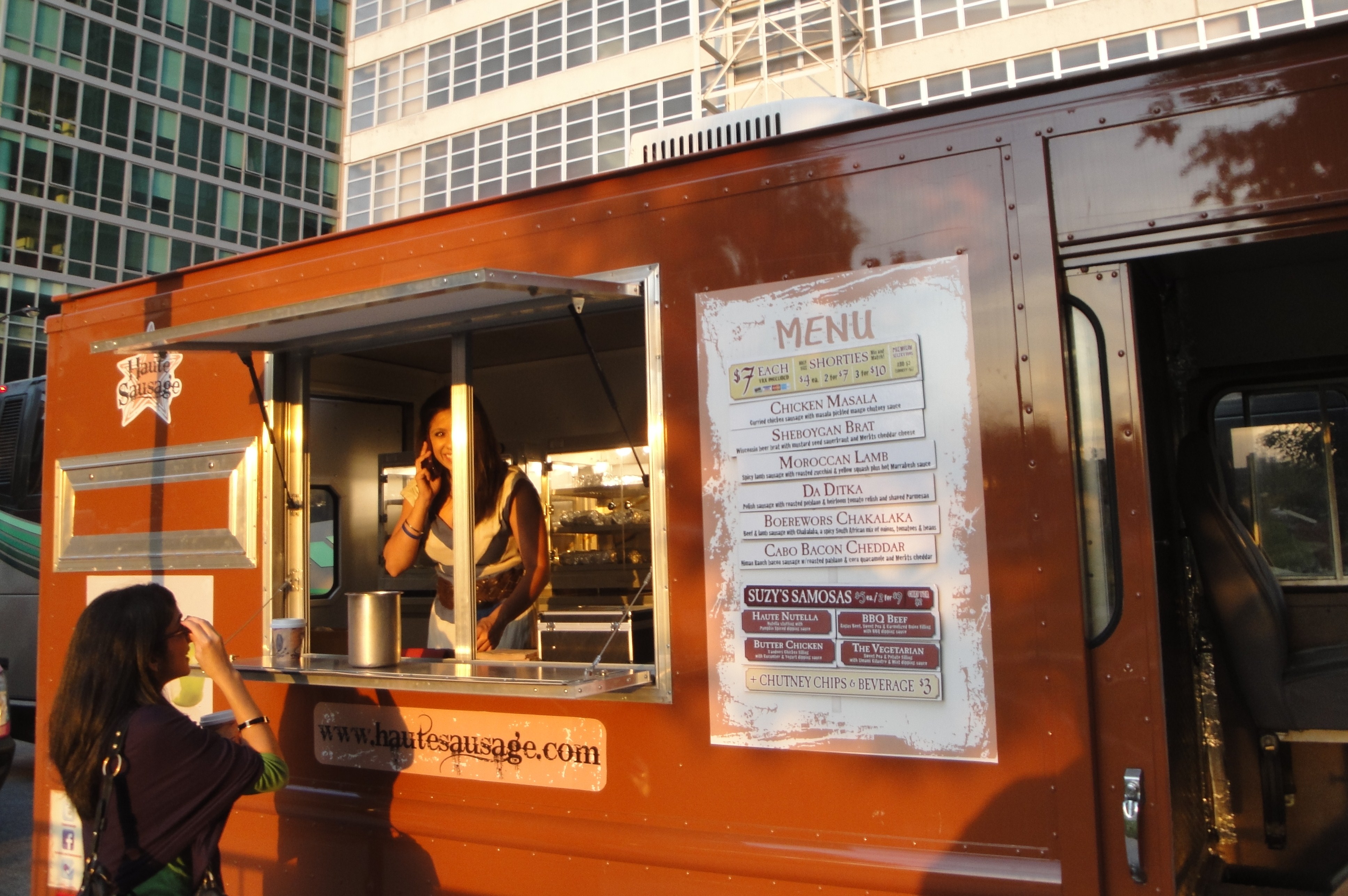 Ninety minutes later I exit the Chicago brown line El station and walk the 2 blocks over to Erie Park to find the Haute Sausage Truck parked up.