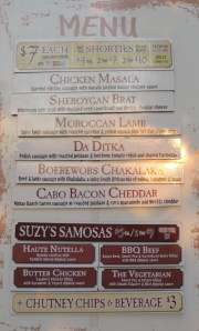 I went for the two sausage combo trying the Sheboygan Brat – a Wisconsin Brat with mustard seed sauerkraut and Merkts cheddar cheese, and the Borewors Chakalaka -a Beef and Lamb sausage with Chakalaka which is a spicy South African mix of onions, tomatoes and beans for $7.