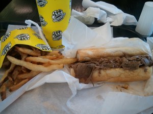 I am not going to get really excited and claim that it is a brilliant sandwich, but its pretty decent and it filled an early Saturday morning void on a sunny November day. I had the Little Al Italian beef combo, which came with fries and a drink for about $8. The fries were good, not covered in salt, freshly cooked, and I did not need to drown them in sauce to make them palatable. The sandwich meat was nicely tender thinly sliced and had a good peppery gravy taste, considering its a franchise quite well executed, but I have only ever had this one Italian Beef in my life so far so it could have been awful or great. In comparison with a standard Roast beef Poboy in New Orleans, or a CheeseSteak in Philly it didn’t fair too badly, but I will need to put the best against the best to be sure.