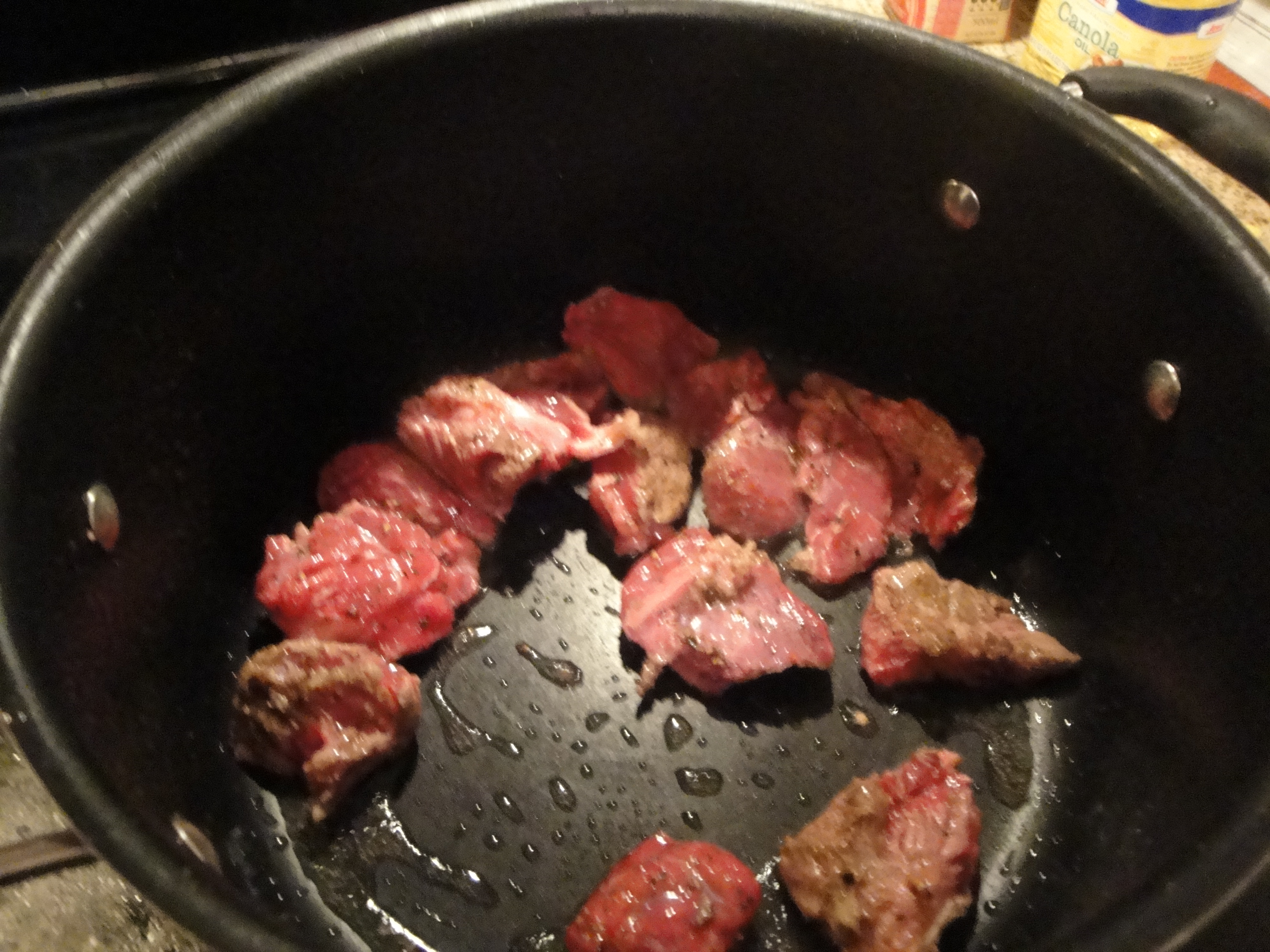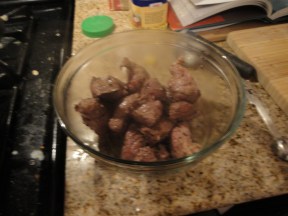 Since then I have watched that season of Top Chef and finally this week made the attempt to cook some soup out of her book. The closest description to the soup she was selling that night was the recipe for “The Never-Ending-Chicago-Winter Beef Stew”. I am not sure that it is exactly the same, but it got a bit colder at the start of the week and I really fancied something warming plus all these trips up and down the Elevated Railway looking for food are making me fat and I needed some good home cooked healthier food. The thing about Stephanies book is that although the recipes sound quite fancy and to be honest have so many ingredients that I would never have dreamt of putting togther, the overiding message and feeling I get from the book is that really the idea is to mix and match what you like and try some of the ideas not just follow the recipes blindly. Of course I just followed blindly as I didn’t read that bit until after I had cooked the soup. The other good thing and true as it happens is that you can cook these recipes (at least this one) in your own kitchen and that you can source the ingredients from a normal supermarket or grocery store. I got all my stuff from the local Jewel Osco, so that was true as well.