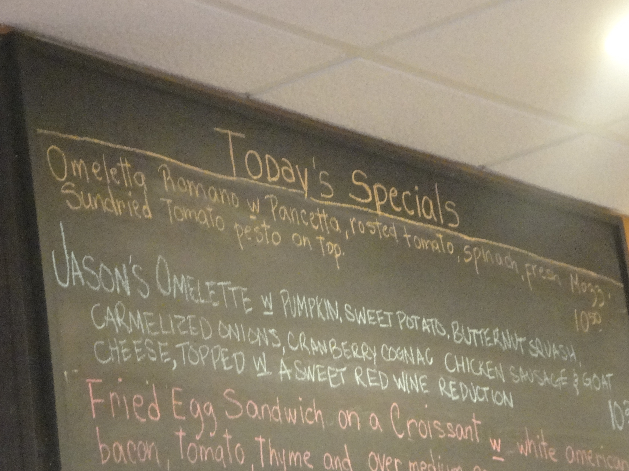 I had to go for the option on the special board. The Omeletta Romano with pancetta, roasted tomato, spinach, sundried tomato, pesto, alongside house potatoes.