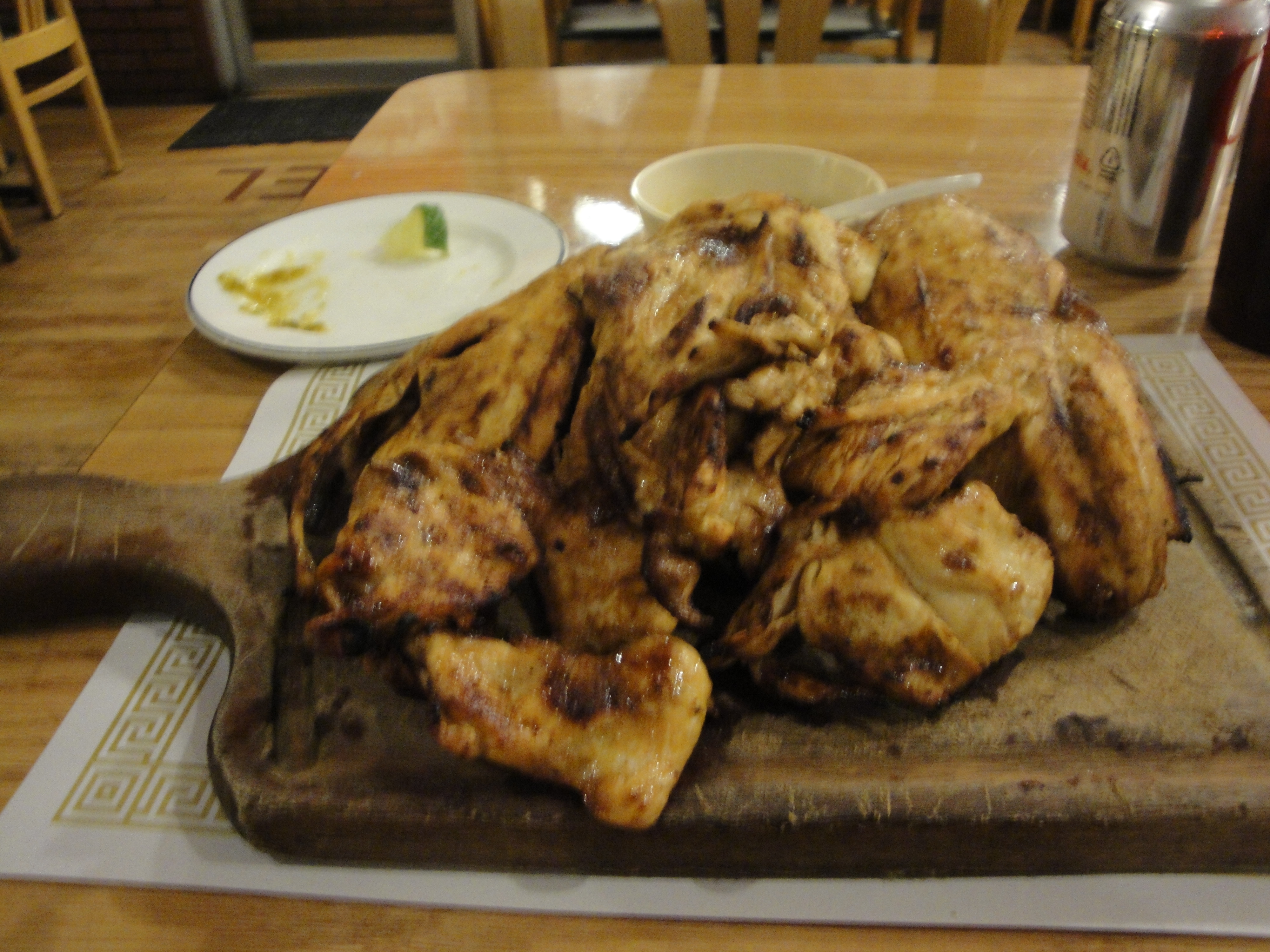I wasn’t really sure what I fancied, but some sort of grilled or roasted chicken was high on the agenda. Outside the special was advertised as chicken with rice and beans, but once inside I was tempted into choosing the “Pollo Entero – se sirve con papa, arepa y platona’. basically the only word I knew was chicken, but a small picture on the menu suggested that it came with plantain or fries. Of course now with the benefit of google translations and actually getting the plate I know it meant whole chicken. To be honest I think it was several chickens and it answered the riddle “Why did the chicken cross the road? To get away from El Llano!” – while it could. Sadly or gladly for me these did not quite escape.
