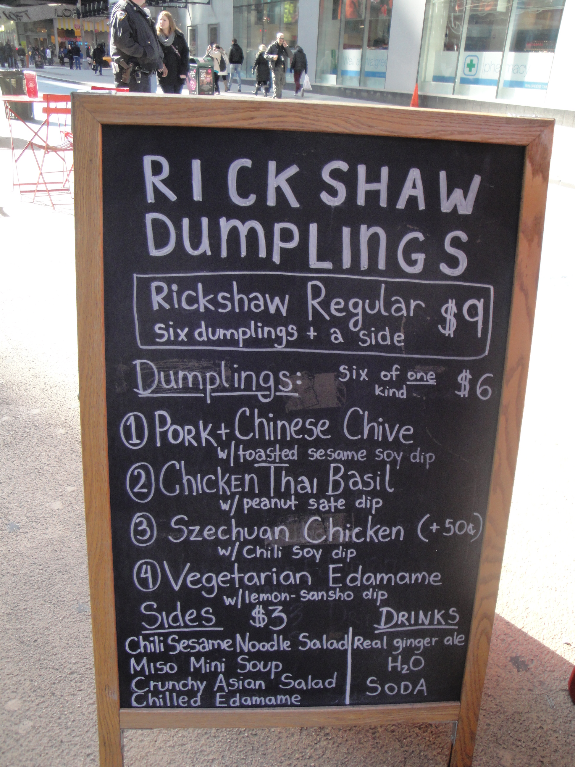 Rickshaw Dumpling Bar is located just on the edge of Times Square, if you surface from the Times Square subway entrance at the far south east corner to avoid the crowds you will hit this particular bar.