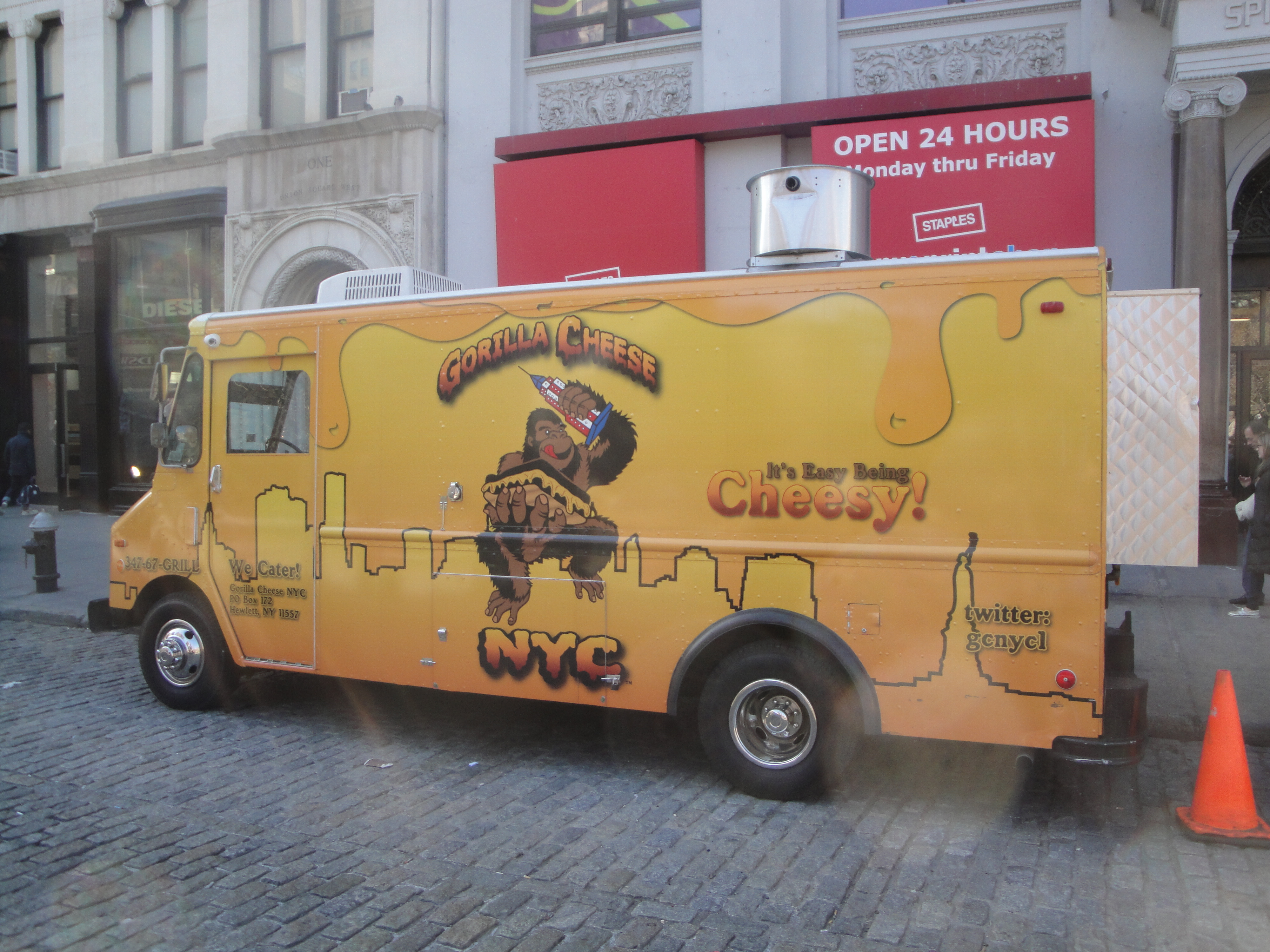 The Gorilla Food Truck can be found on the streets of Manhattan and their locations are posted on their website http://gorillacheesenyc.com/ you can also follow them on twitter and facebook. Not the greatest grilled cheese in the world but good enough to fill a small hole if you chance upon them.