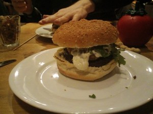 OK so after several pints of English Ale it was time to find some food to soak it all up. I really fancied a burger of some sort but I was in England and to be honest it is not as easy to find a good one here at 10pm as it would have been in Chicago. Wandering or stumbling away from Langtreys Bar we arrived at the Gourmet Burger resturant, which is a New Zealand chain, I know! New Zealand, not quite what you would have expected, but I have been here before and my overiding memory was that it was one, good, and two, seriously overpriced, buts let not forget we had just consumed a lot of beer so the memory of it being good was fresh in the mind, the memory about how much it cost was not going to kick in for a couple of hours yet when we had to pay for it.