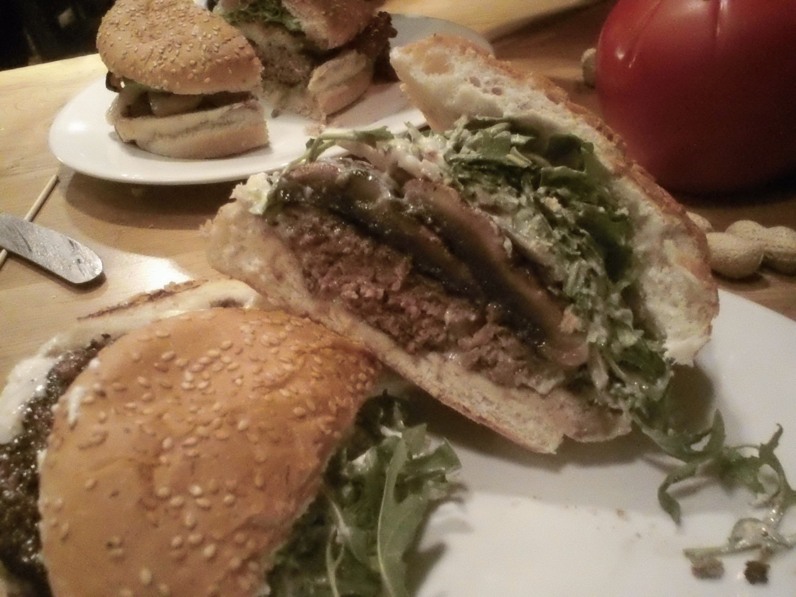 I had chosen “The Wellington” burger which was described simply as a Beefburger with Mushroom, horseradish sauce, rocket and mayo with a soft sesame bun. For Rocket read Arugala, pretty much the same thing, a nice crunchy peppery salad leaf, together with the horseradish sauce it made for quite a savoury spicy flavour, the big chunky mushroom slices also added to what was a pretty good beer soaking up meal. I did get some onion rings to go with it, but they were a bit dry and uninteresting so I just offered them to the table, I was happy enough with just my burger. The burgers are made from 100% West Country beef and I was so glad when they asked me how I wanted it cooking, as then I knew it was at least going to be cooked to order and it had a chance of coming out with some juice left intact.