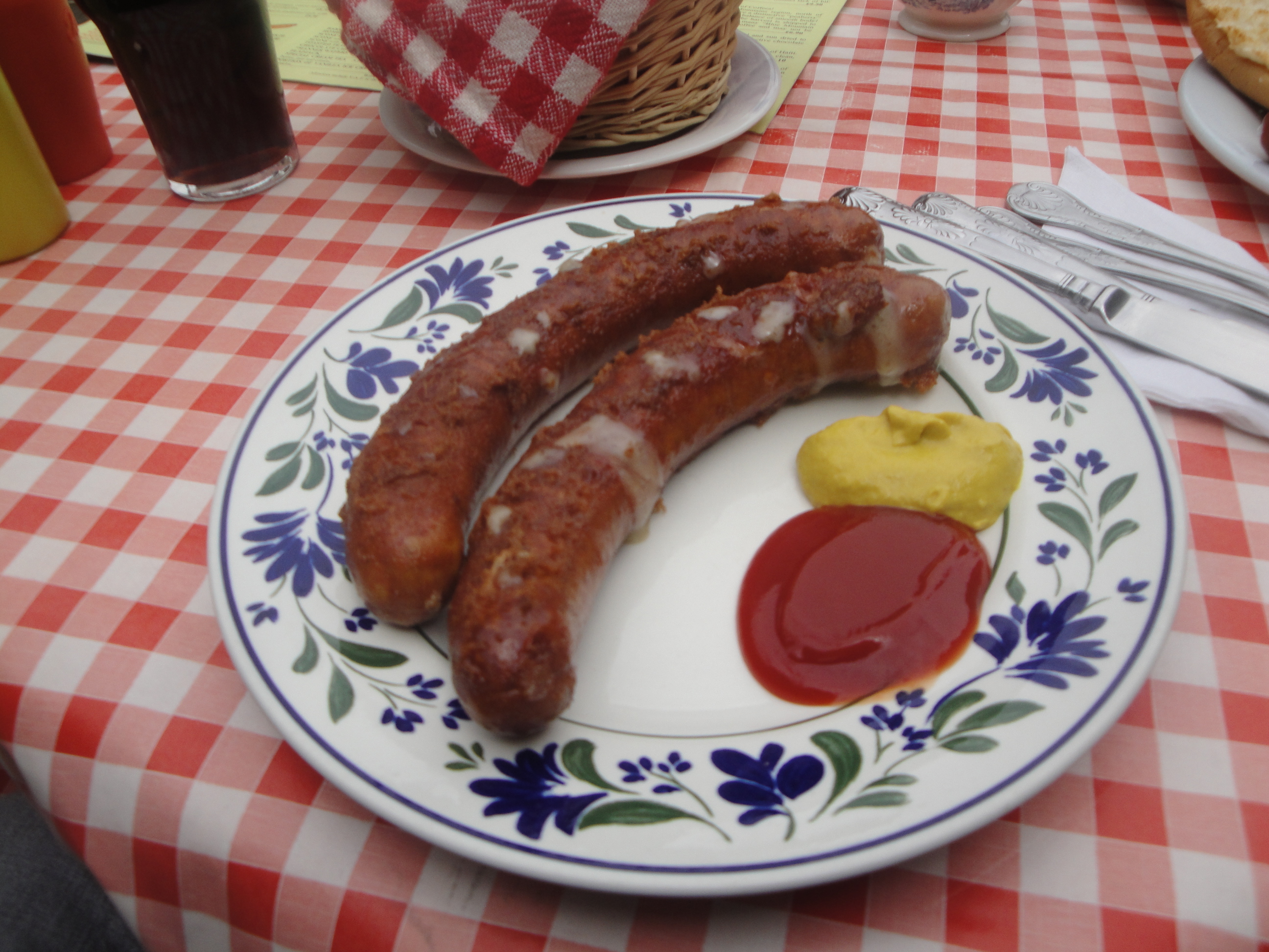 I would have loved to have had some sort of sampler plate but in the end we restricted ourselves to a pair of Kaeskrainer, and a Bratwurst on a toasted bun.
