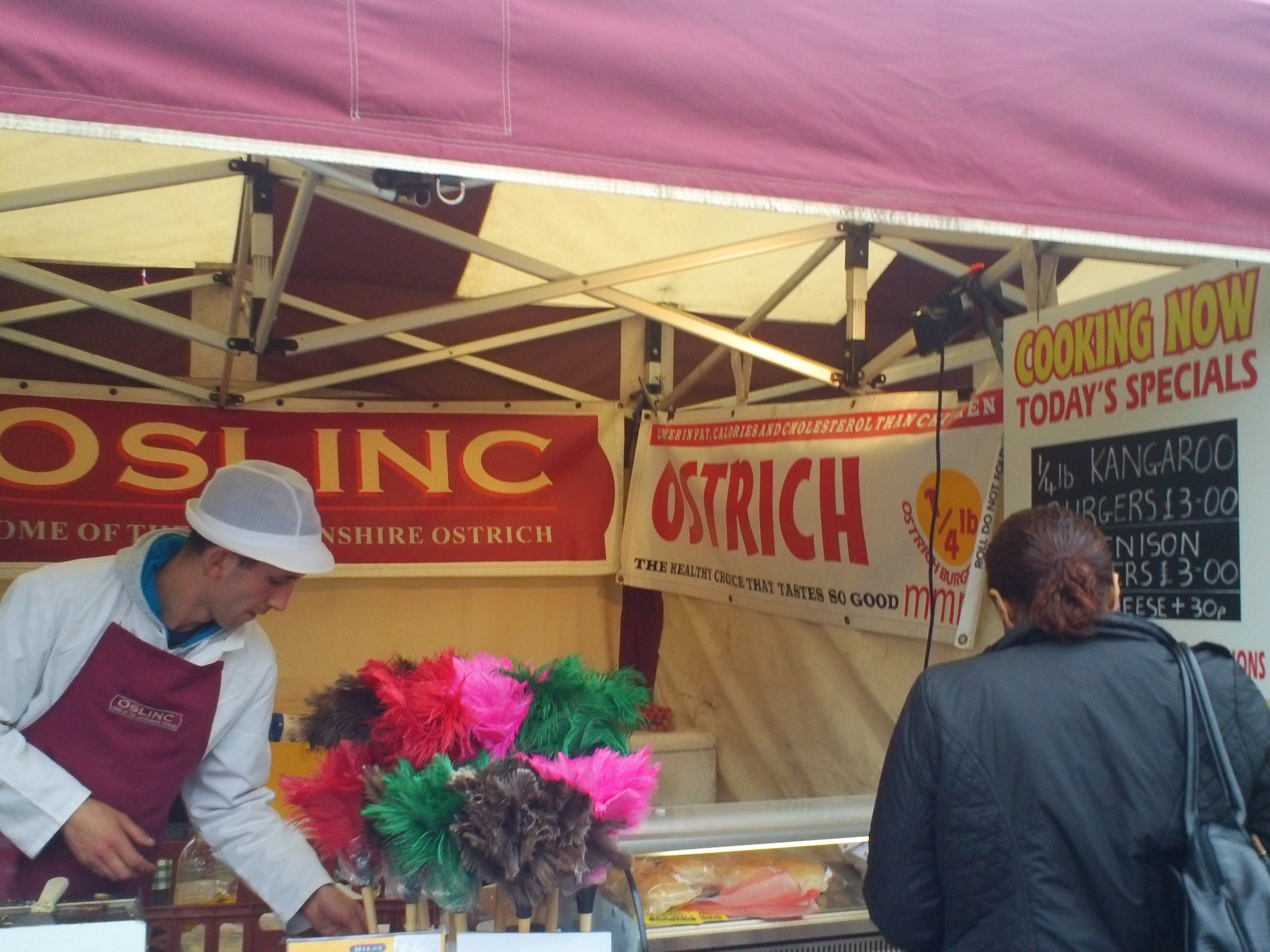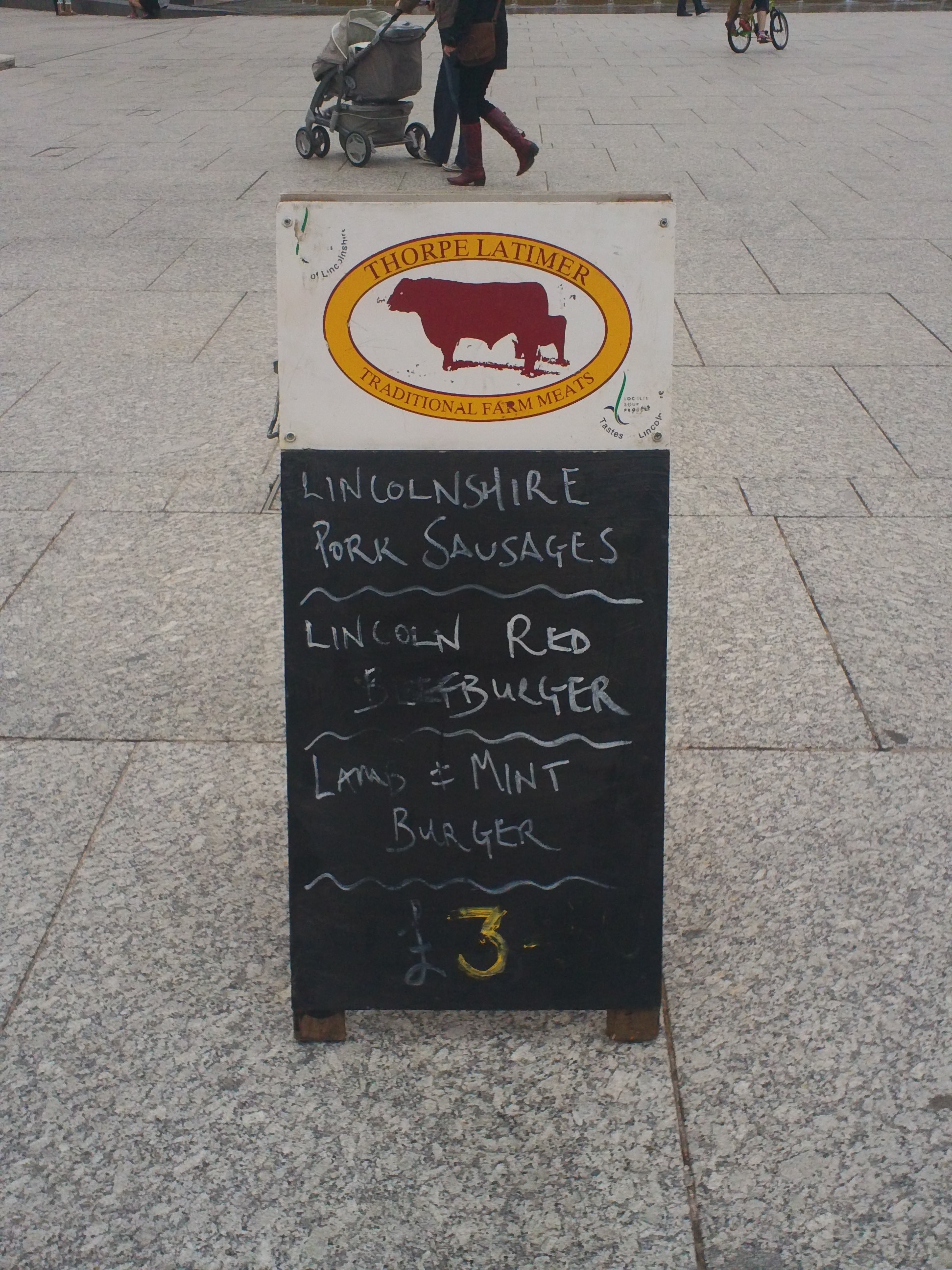 You can always rely on the British to be an adventurous bunch, especially when it comes to putting a random animal in between two burger buns. At the Farmers Market in Nottingham’s Old Market Square this last weekend I was not disapointed.