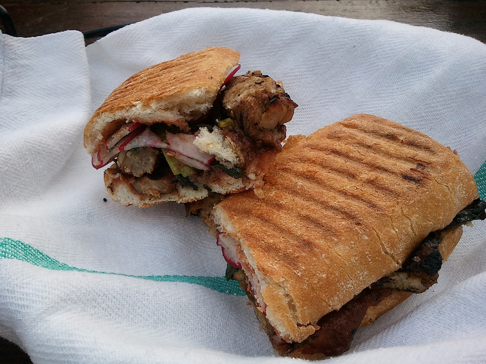 My favourite of the four sandwiches was the Country Style Pork Rib Panini. It looked good but the real wow moment was the first bite, I mean how good can you make a pork rib taste? Well this good it was something else, I hesitate to say it, but the phrase ‘food orgasm’ drifted around the table. So what created that excellent flavour? The pork had been marinated in a soy-pomegranete mix and it was lightly smeared with a cherry mustard to give it a nice light sweetness to contrast and add a more savoury bite the sandwich also contained some sliced radish and some charred spring onion (scallions) all this enveloped in a toasted ciabatta roll.