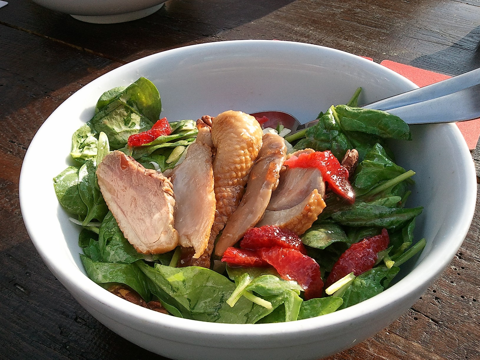 The Smoked Duck salad was visually appealing and it looked as good as it tasted. The Duck was juicy and had a light smoky flavour, the spinach salad on which it sat also contained some shaved fennel and some very red slices of cara cara orange, all lightly dressed with a pecan sherry vinaigrette. The orange made a nice contrast to the fennel as it was sweet and not as sharply acidic as normal everyday orange.