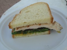 Thursday’s Chef du Jour was Tony Mantuano from Spiaggia and he was offering a Grilled Chicken sandwich for 10 tickets. It did not look much on the plate but it was a very tasty sandwich, the roasted tomato, aruguala and burrata cheese blended well with the olive oil coated semolina bread. Not too dense or filling which is what you need at the taste.