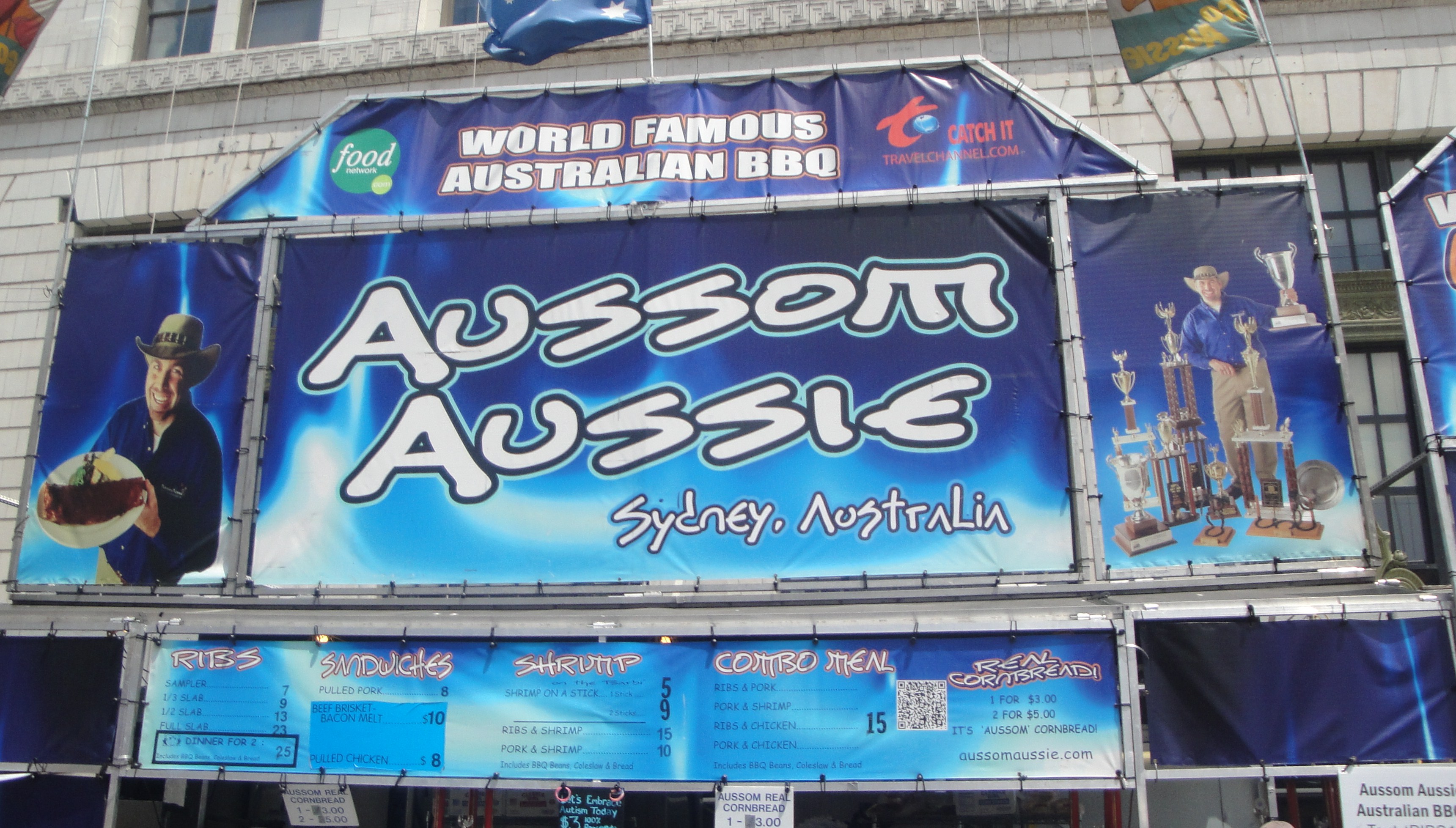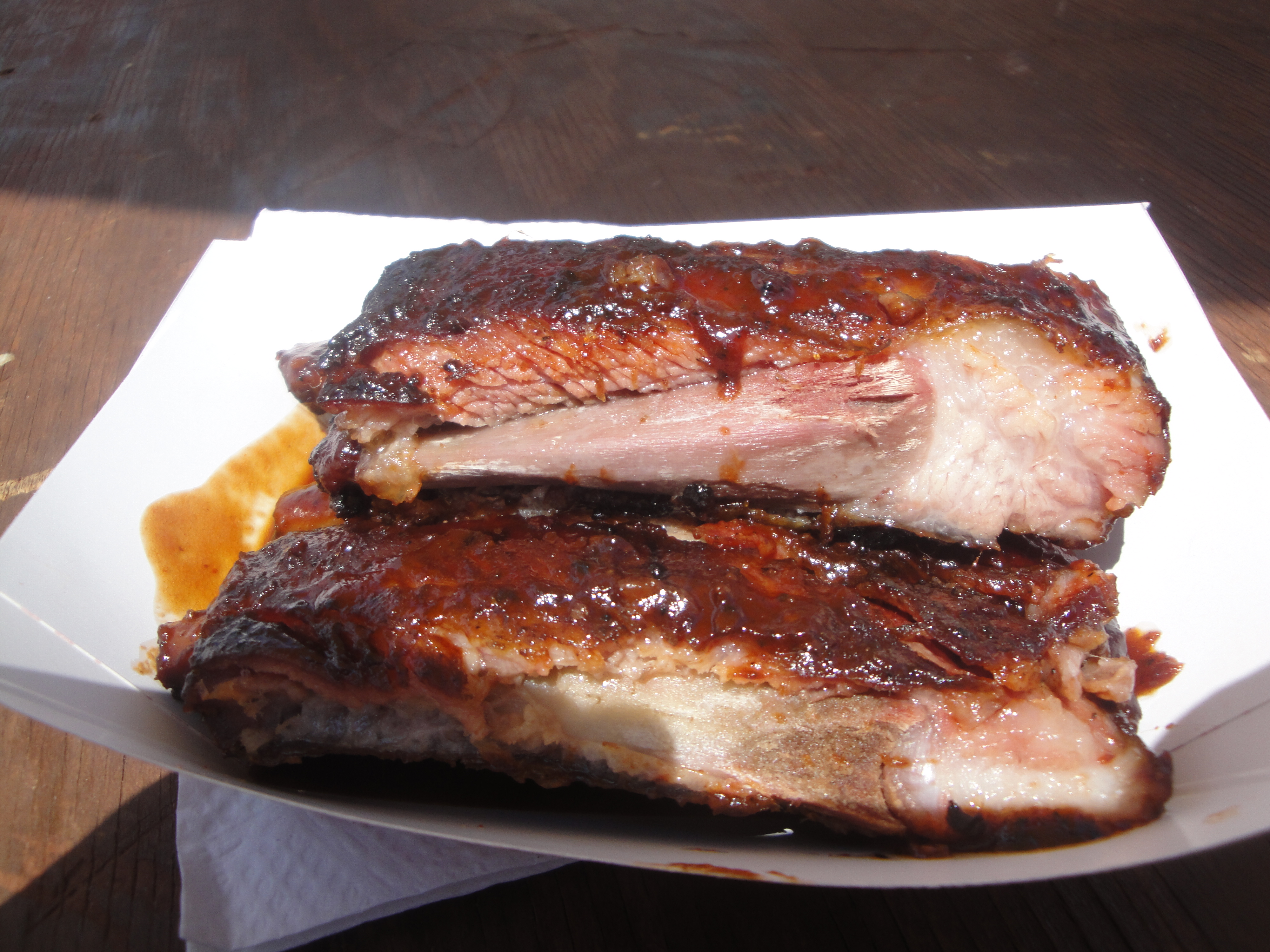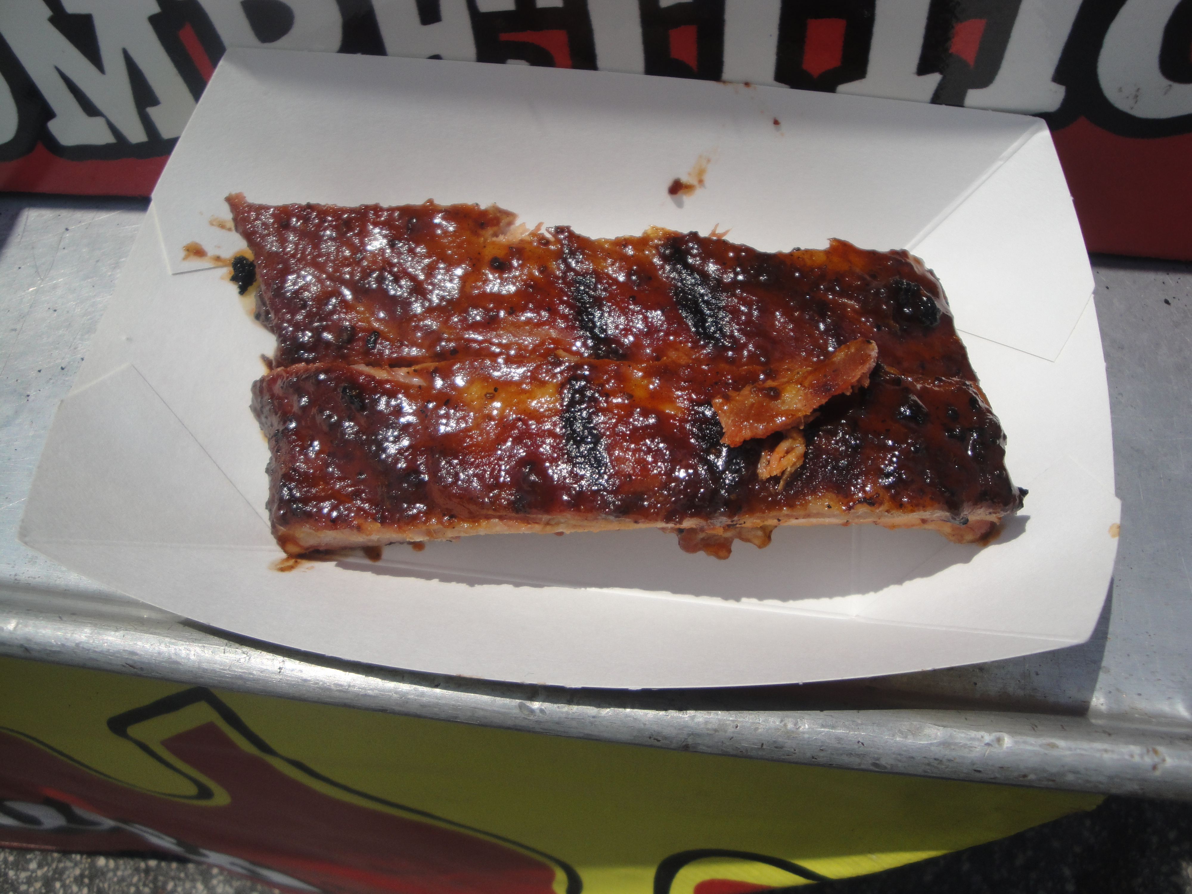 My last plate of ribs was from the Aussom Assie guys, I had to show some colonial brotherhood or something like that anyway. I was tempted to try some of their shrimps but I was fixated on getting my handle on this whole rib thing. I ended up (for a change) getting another 3 bone sampler for $7. These were a bit fatty and I actually struggled to eat them, maybe I was all ribbed out by this point. They did come with a traditional Australian fruit based barbecue sauce which was probably the best sauce I tasted all day. I feel that I ought to apologise to the guy at my table who enthusiastically enquired as to what I had got and whether it was any good. I can still see his crestfallen face as I gave my considered opinion that to be honest they all taste the same to me and I can’t really tell you which ones are the best. Just at that moment I felt that maybe I was at the wrong table, I think that the real rib enthusiast should be made to wear a badge or a bell of some sort to alert those like myself who are just passing by and getting passed by. whoosh.