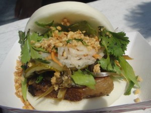 This weekend walking through the Taste of Lincoln, Chizakaya and my paths crossed once more. Last weekend I tried their Japodog and it’s true just as their sign states, they had me at bacon. This time I took the opportunity to try the two dishes that I missed out on last time, the Pork belly slider and the Octopus beignets