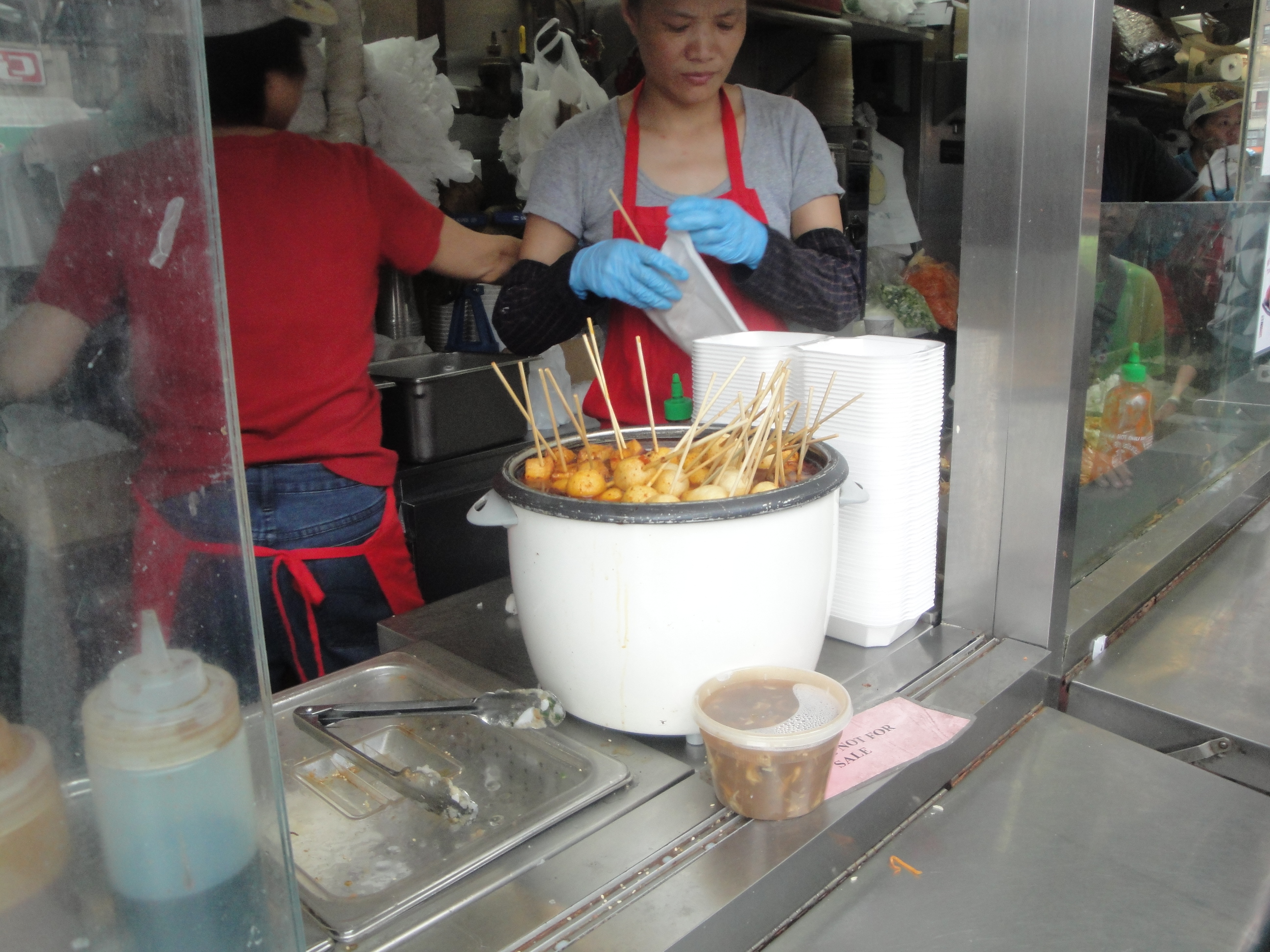 There were things on sticks in a pot of spicy smelling sauce that turned out to be spicy fish balls for just $1. Cheap and fascinating at the same time, who could resist?