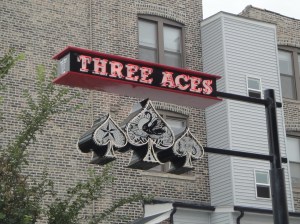 Three Aces is located at 1321 W Taylor Street. Website: http://threeaceschicago.com/ Ride the Pink Line to Polk, step off and stroll over to Taylor Street