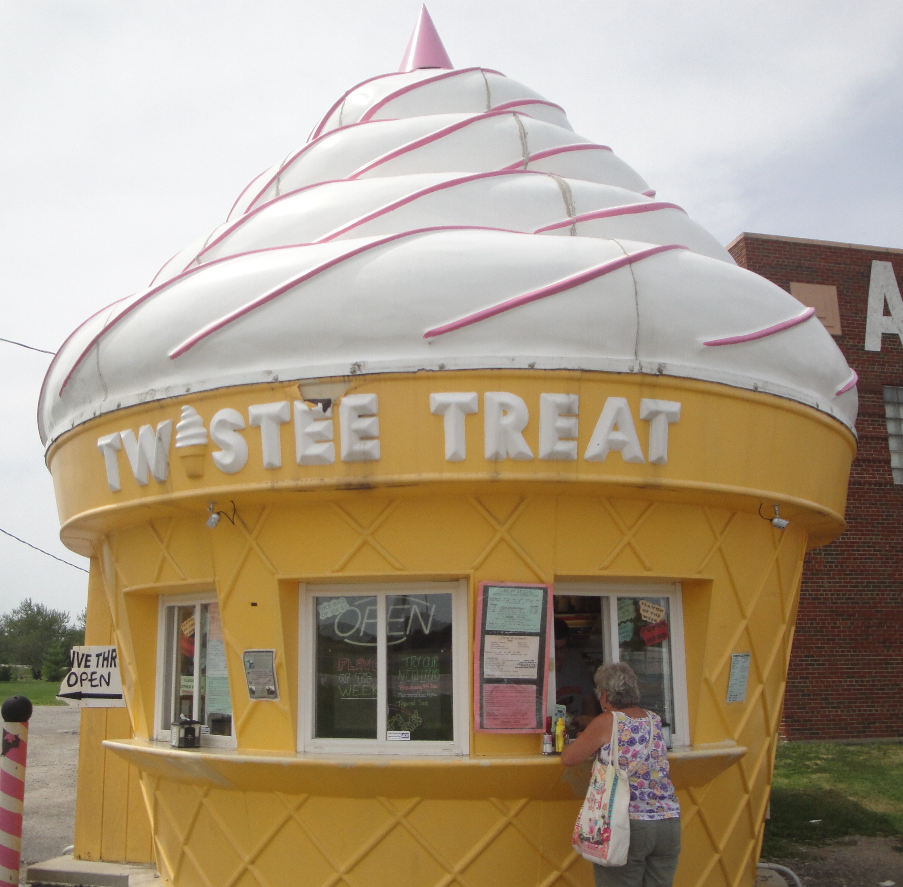 As you drive along Route 66 through Illinois on the way to St Louis you pass by the Twistee Treat Ice Cream building. If you don’t see the ice cream shack – you will probably have been distracted by the UFO, or great big tall man holding an ice cream.