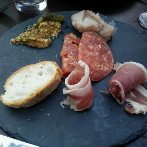 I have some other favourites off the menu, or rather off the chalkboard, the main one being the charcuterie platter which is a slate plate with several different meats and some nice crusty bread to go with it. I have tried to take picture of it on my phone but the lighting in the bar is quite subdued and they never come out that well. That is in contrast to the platter which always comes out well. So just to show you how nice that looks I borrowed the picture above off Foursquare. I dont really like posting other peoples photos, but until I get a good one of my own I would like you to at least see what you are getting.