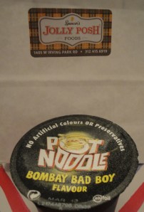 I have not eaten a Pot Noodle since I was a student, and I think bought this pretty much for the bragging rights. I was really surprised to see a whole set of shelves of pot noodles in Chicago.