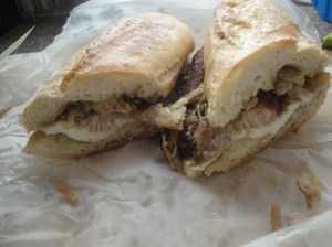 The Real Kitchen tagline is “Food your mother would cook if she’d been to culinary school“. I am just putting that out there as I know my Mother reads this. I have had Real Kitchen on my radar for some time now, but this week it came up in conversation both with a work colleague who had newly moved into the neighbourhood and my upstairs neighbour, so I thought hold on I can’t be the last person in the district to visit the place. I had an abortive trip midweek in search of some gumbo, but they didn’t have any, so I decided to save my next trip for the weekend. The basic premise of the place is that they prepare an assortment of choices that you can take home to heat up at your leisure, they also are feted to make some jolly good sandwiches, so my mission this Saturday was to try both, a sandwich for lunch and something to eat for dinner as well.