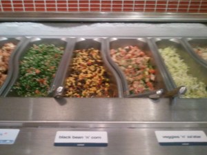 They explain the deal much better on their website http://eatfalafill.com/ so I suggest that if you like Falafel you should check that out yourself. Basically you can get a ‘pocket’ or a ‘bowl ‘of 4 pieces of Falafel, you can then help yourself to any of the contents of their salad bar. I chose their curry falafel made with lentil daal in a bowl, then a selection from the buffet. I ended get quite a few choices that on their own were good but they did not all mix together well. There was some ‘Cracked Wheat w/ Pomegranate’ which is Burghol wheat with pomegranate syrup, tomato, lemon, and spices, some ‘Tomatoes n’ Cukes’ which is a Jerusalem salad. tossed with cilantro and tahini, (that was my favorite of the salads), I also added a bit of ‘Black Bean n’ Corn’ with sweet roasted red pepper, jalapeno, and fresh herbs. To dip the falafels into I had a little Hummus essentially Chickpeas, tahini, garlic, lemon juice, oil and salt and last but not least some Tatziki.