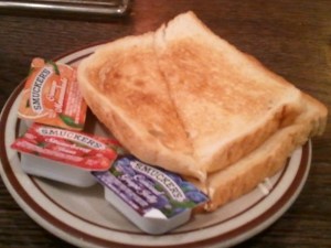 But hey now what is this, plate three, a couple of slices of toast. Like that was something that I was going to be needing? Well actually I did eat a bit of it, just to dip into my egg yolks.