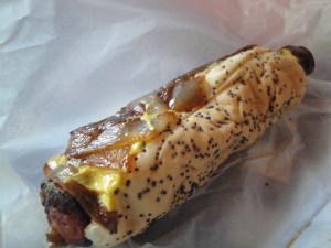 I had one of my personal favourites from the Chicago Hot Dog genera, a Maxwell Street Polish. This particular one was excellent, a perfect mix of simple ingredients, firstly the topping of grilled onions, wide, chunky, and crunchy with a super sweet and savoury tang. There was a really nice char bite to the dog itself, in fact on the first bite I could have sworn that the sausage was wrapped in a thin crunchy layer of bacon. It wasn’t but that was just how good a bite and flavour the dog was. The Mustard to Onion ratio was just right and the poppy seed bun was firm and solid and a great bed for the polish dog to rest within.