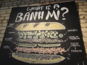 Not everyone knows what your typical Banh Mi sandwich is or even what it contains, so just to help us all out those kind folks at Banh Mi & Co at Lakeview have created a nice chalkboard drawing on the wall to diagram it all out.