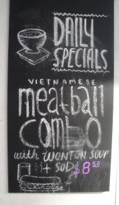 However on this occasion I had the daily special which was a Meatball Banh Mi, with Wonton Soup for $8.50.