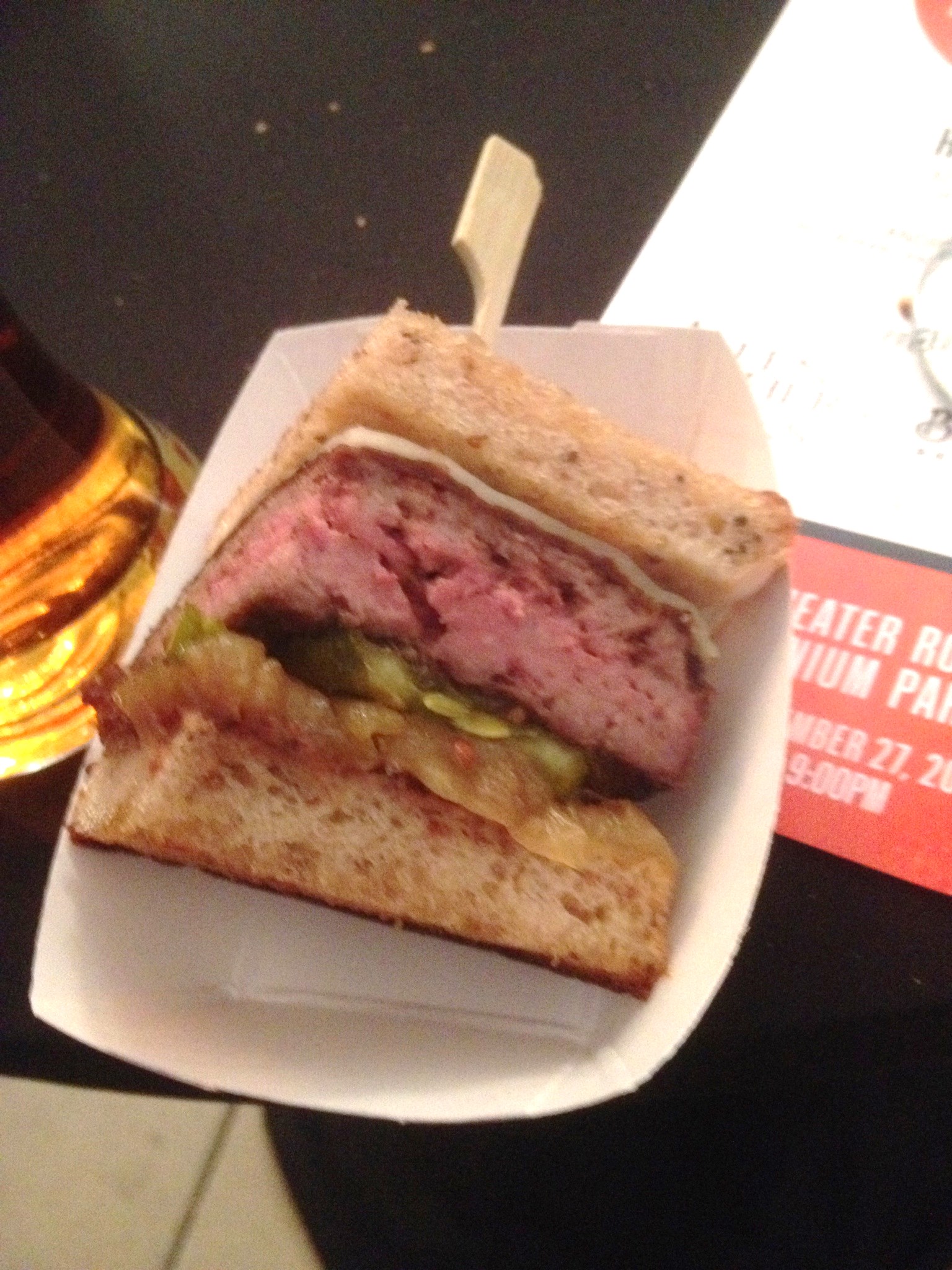 I was strong though, Jeff’s token was safe in my pocket. Ryan Pitts had put out what he was calling the Purple Label Burger which had a really good set of listed ingredients, bourbon bacon jam, jalapeno relish, wild rocket, grana padano, and some other bits that I cannot recall.