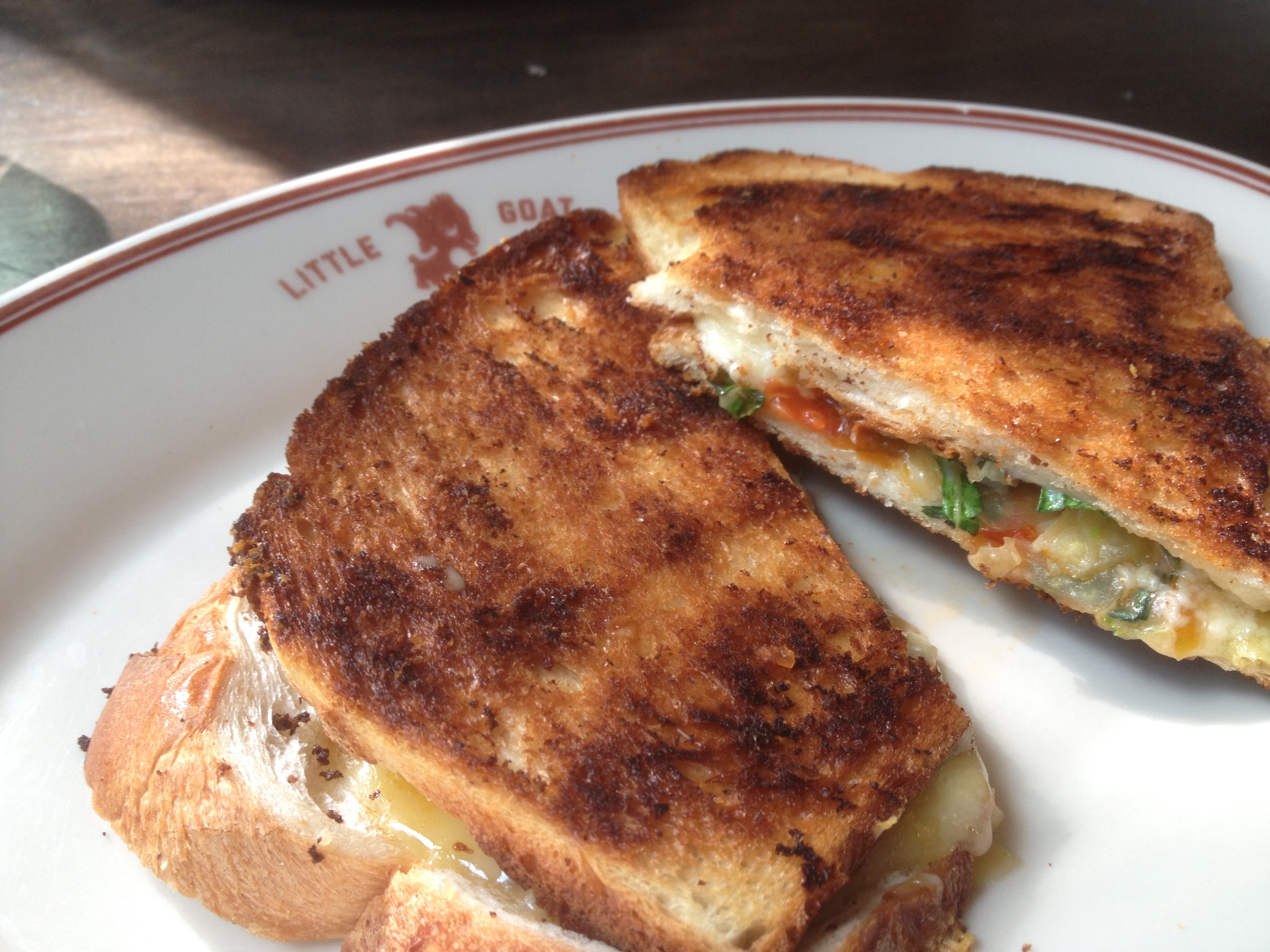 At first I had planned to have some sort of breakfast type item maybe some eggs and bacon, or perhaps maybe a corned beef hash? Then on the walk over I starting thinking that maybe I should have something goat related, a burger perhaps. Then as I started to cast my eyes down the menu, it all changed as I saw the two words ‘Grilled Cheese’. Ever since I heard that Grahamwich had shuttered and his dream of a grilled cheese sandwich was removed from the memories of my mouth I had wondered where my next go-to grilled cheese was going to come from. Could this be the one? Would Steph and her Little Goat team come to the rescue with a new grilled cheese to hang my hopes and sandwich dreams upon?