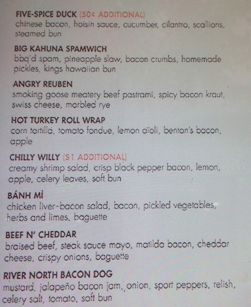 Burke’s Bacon Bar is on North Rush Street attached to the James Hotel and next to David Burkes Primehouse. It is just a short walk away from the Grand red line CTA station. I read about its opening in…. well everywhere to be honest and as I quite like David Burke, and bacon, I was keen to find out some more and see what it was all about. According to their website Burkes Bacon Bar is “An innovative sandwich concept by David Burke“, described as ‘a grab-and-go style sandwich shop specializing in palm-sized, bacon-centric sandwiches dubbed “handwiches.”.