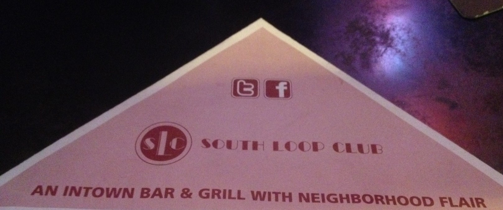 The menu describes the South Loop Grill as ‘An Intown Bar and Grill with Neighborhood Flair’. Well now I am not sure about that, it wasn’t any kind of club that I have even been into, but it seemed to be an OK kind of place to hang out for a while, drink a beer and eat a burger, while watching the sports on one of their many televisions.