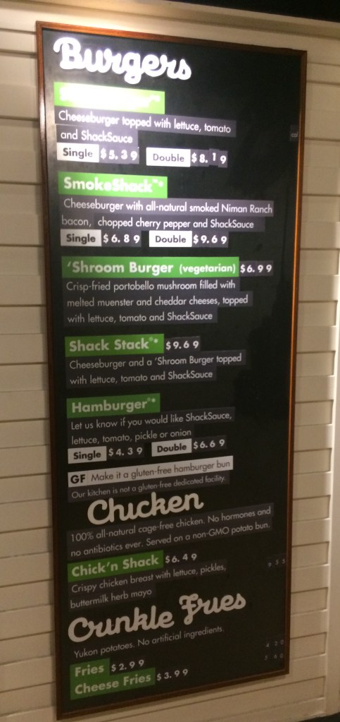 It was a bit hidden behind the doors keeping the cold out from the hotel, but inside it was a pretty impressive location that they describe pretty well on the Shake Shack website as;
