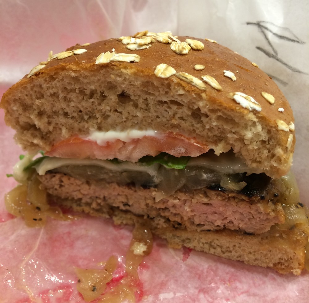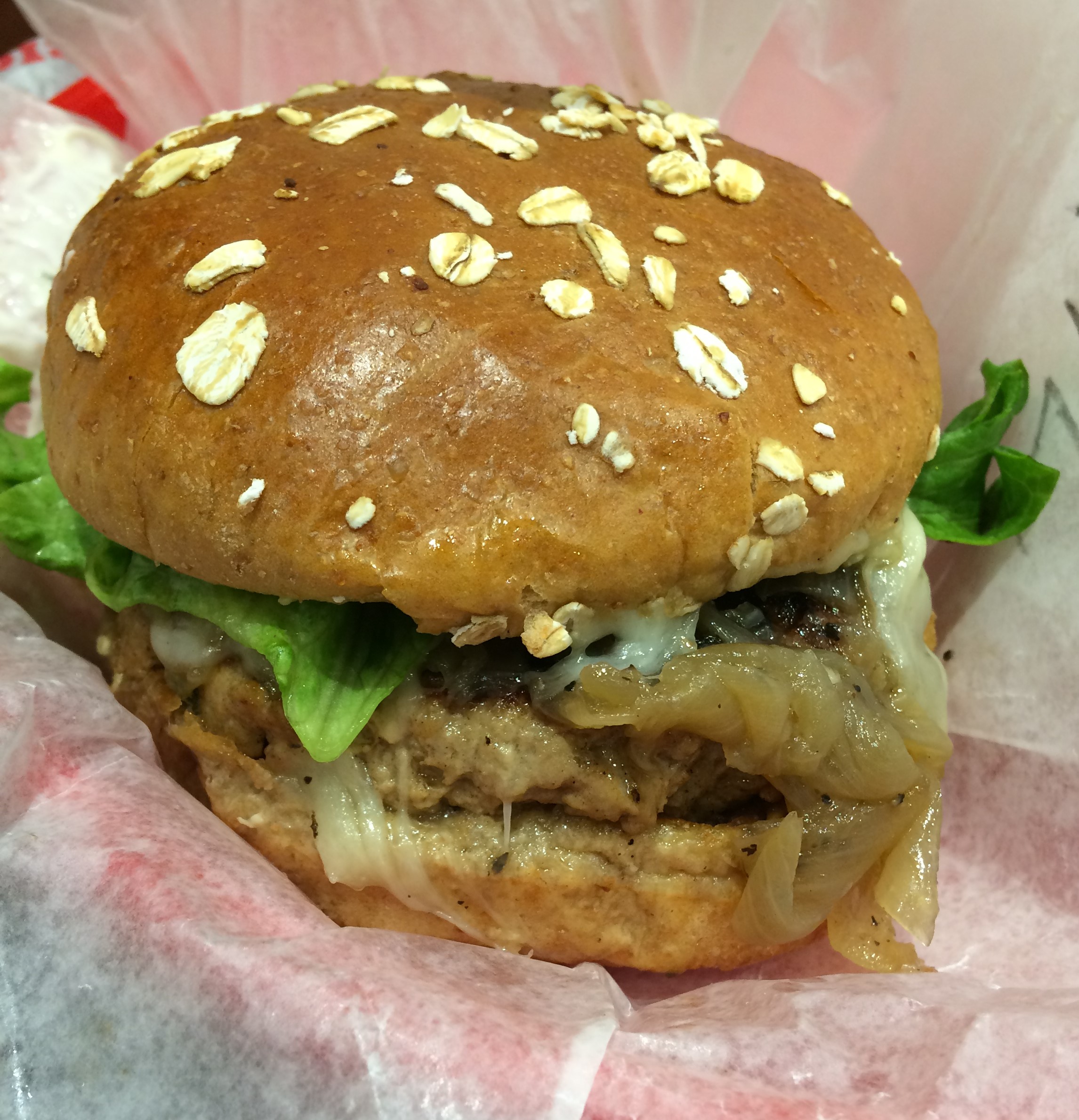 Officially it is described as a “Free Range Turkey Burger” topped with “Caramelized Onions, Swiss Cheese, Ruby Tomato, Lettuce” on a “Wheat Bun with Southlawn Herb Garden Mayo”