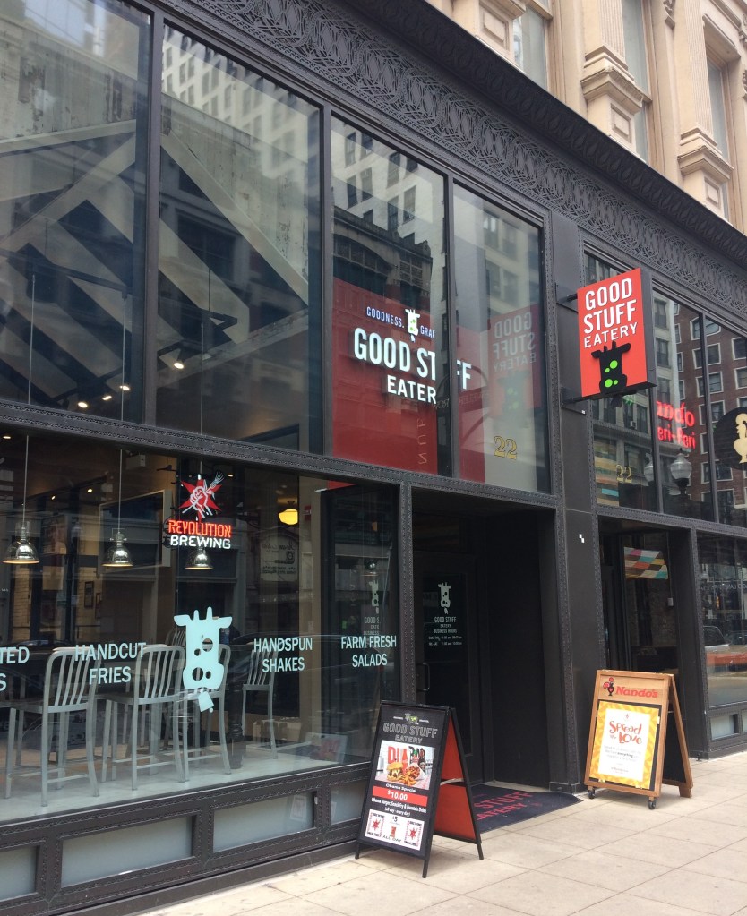 The Good Stuff Eatery in Chicago is located in the Loop at 22 S. Wabash Avenue, Chicago, IL 60603