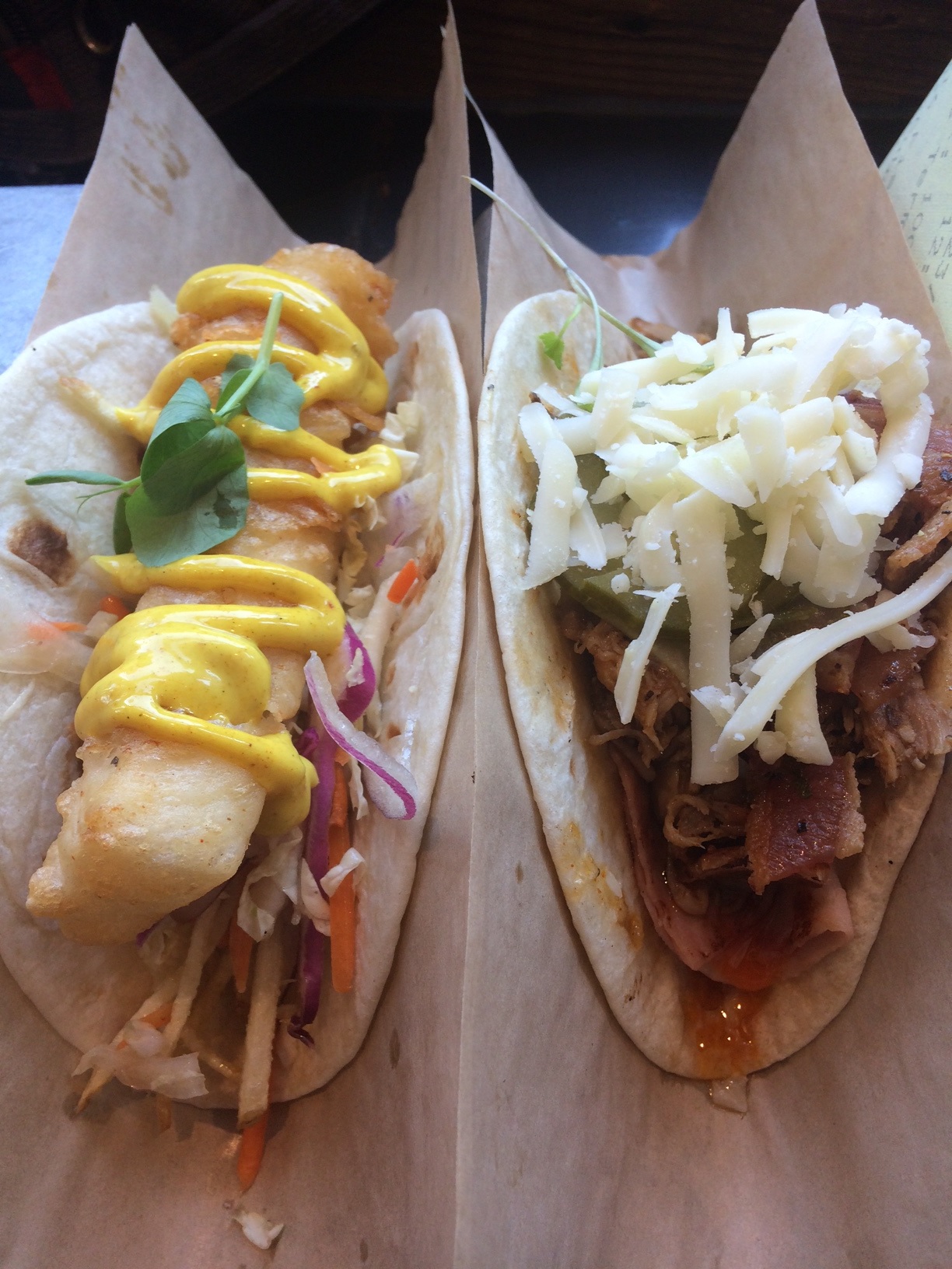 Fish and Chips Taco & The Cuban Pig Taco
