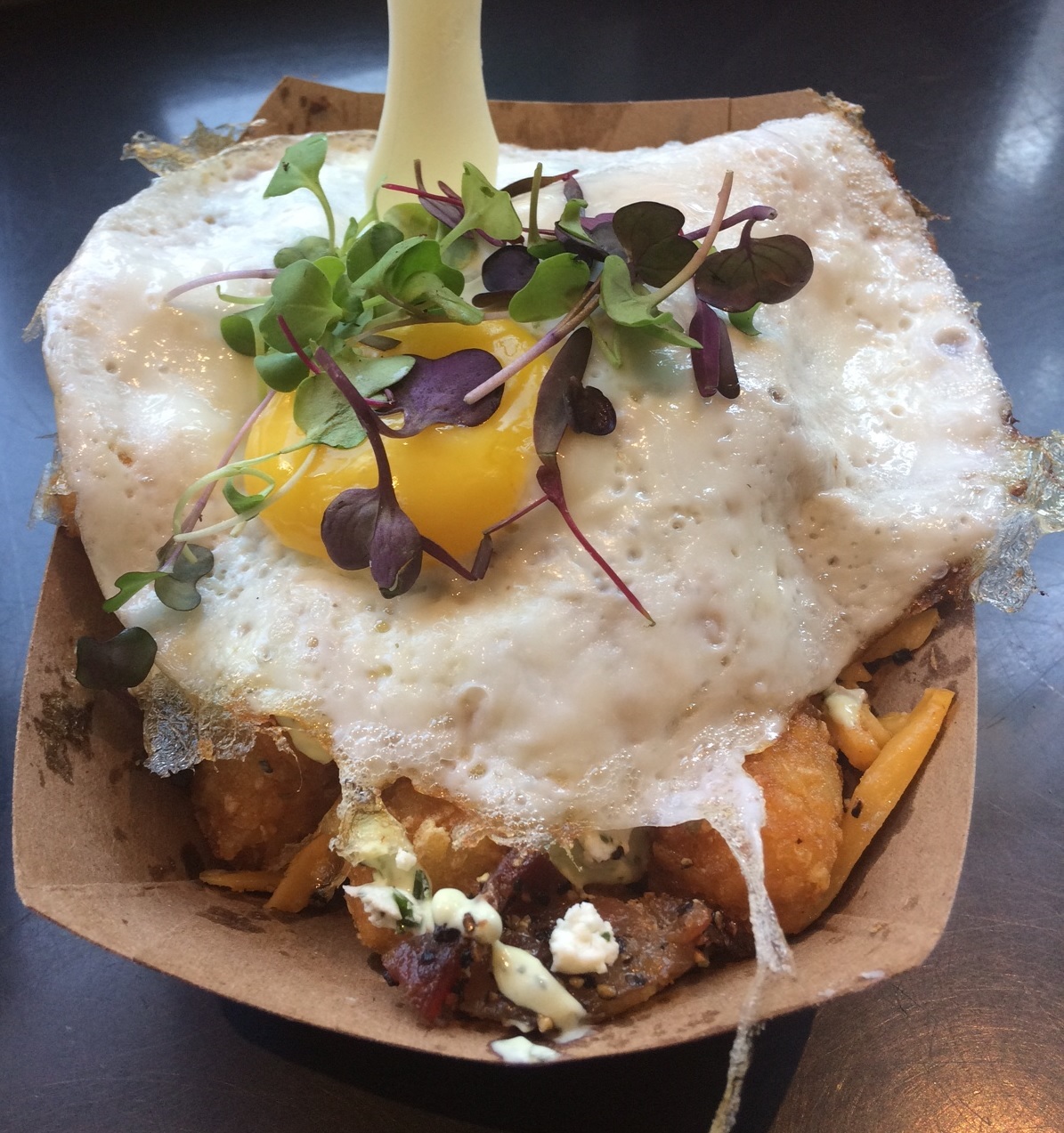 Tater tots and a Fried egg on top is just something so irresistible that basically I just didn’t contemplate resisting, it was a futile thought that was in someone else’s mind (someone I do not even need to know)